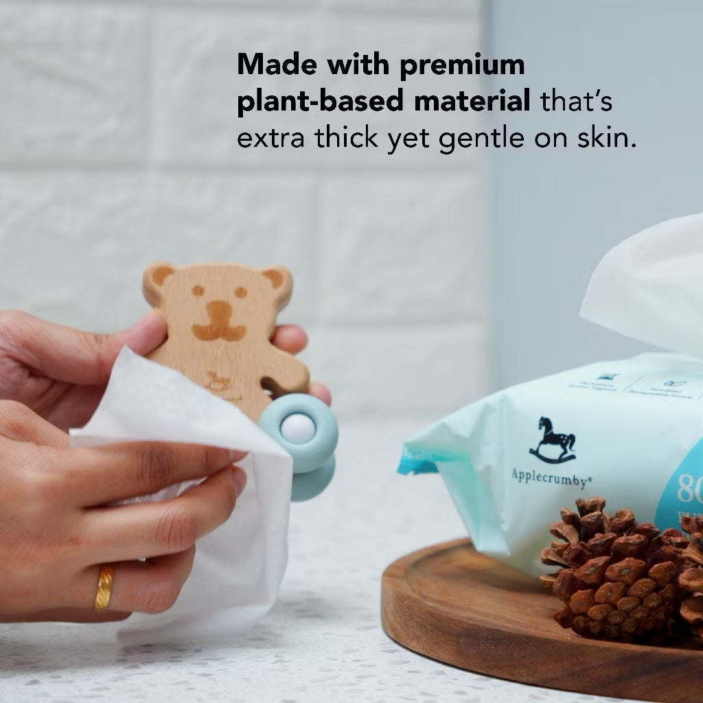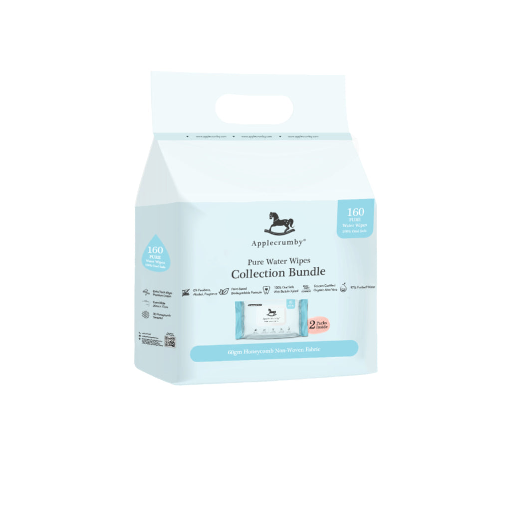Introducing Applecrumby Pure Water Wipes, the ultimate luxury for your baby's delicate skin. Made with pharmaceutical grade purified water, these wipes are not only 100% free from chemical nasties, but also infused with xylitol to promote strong and healthy teeth and gums. The extra thick and wide premium cotton, along with the 3D honeycomb texture, ensures effective and safe cleaning for your little one. Trust in the antibacterial agent for an added touch of oral antiseptic protection. Experience cleanliness and elegance with our Twin Pack of 80 wipes each.