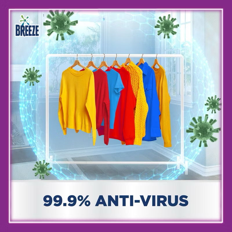 Breeze Colour Care with Colour Guard Technology, specially formulated to remove tough stains with 3X power while keeping colours bright even after 30 washes.