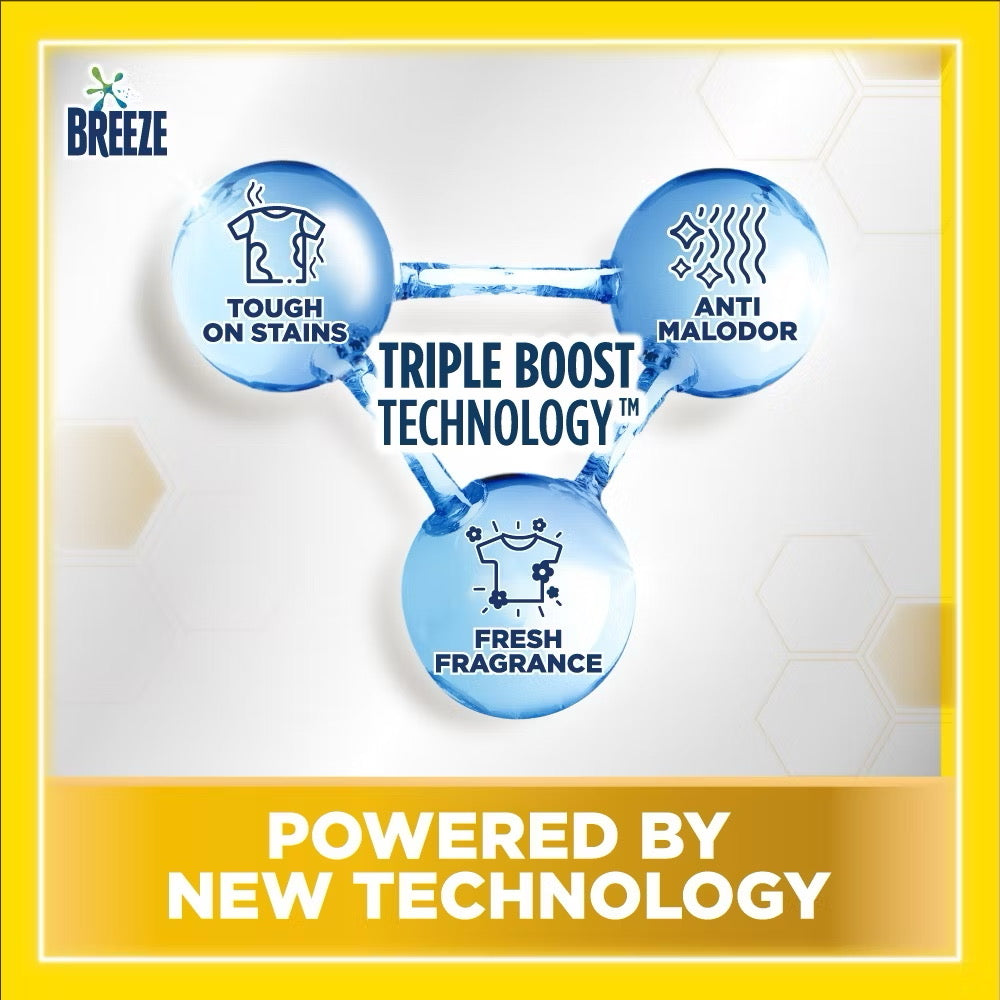 Breeze Goodbye Musty with in-door Drying Cleaning Technology, specially formulated to remove tough stains with 3X power, while leaving your clothes smelling fresh even after indoor drying.