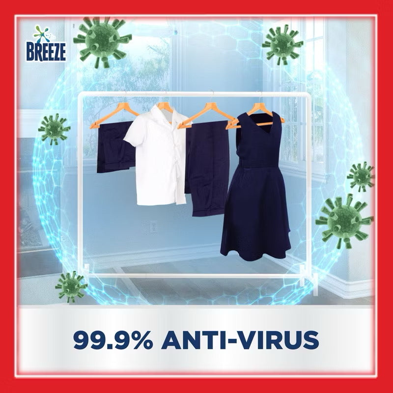 Breeze Power Clean with Radiant White Technology, specially formulated to remove tough stains with 3X power while keeping your clothes dazzling white.