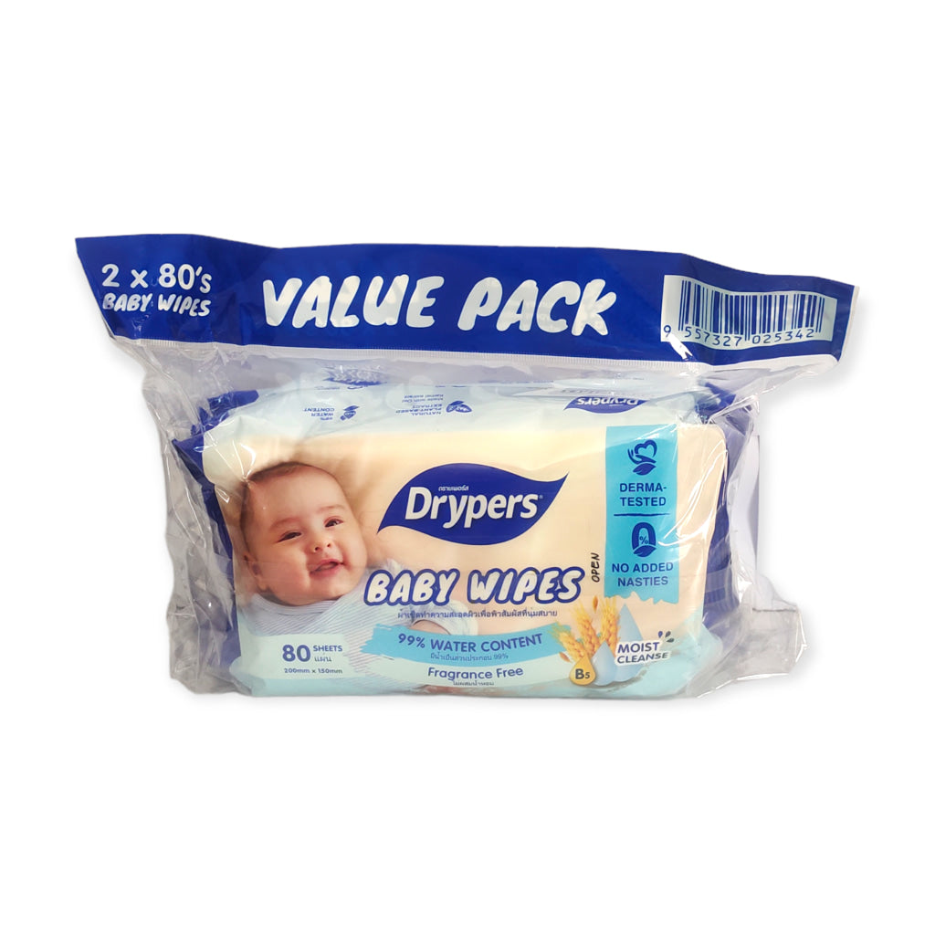 Drypers Baby Wipes Oat Fragrance Free Twin Pack 2x80s