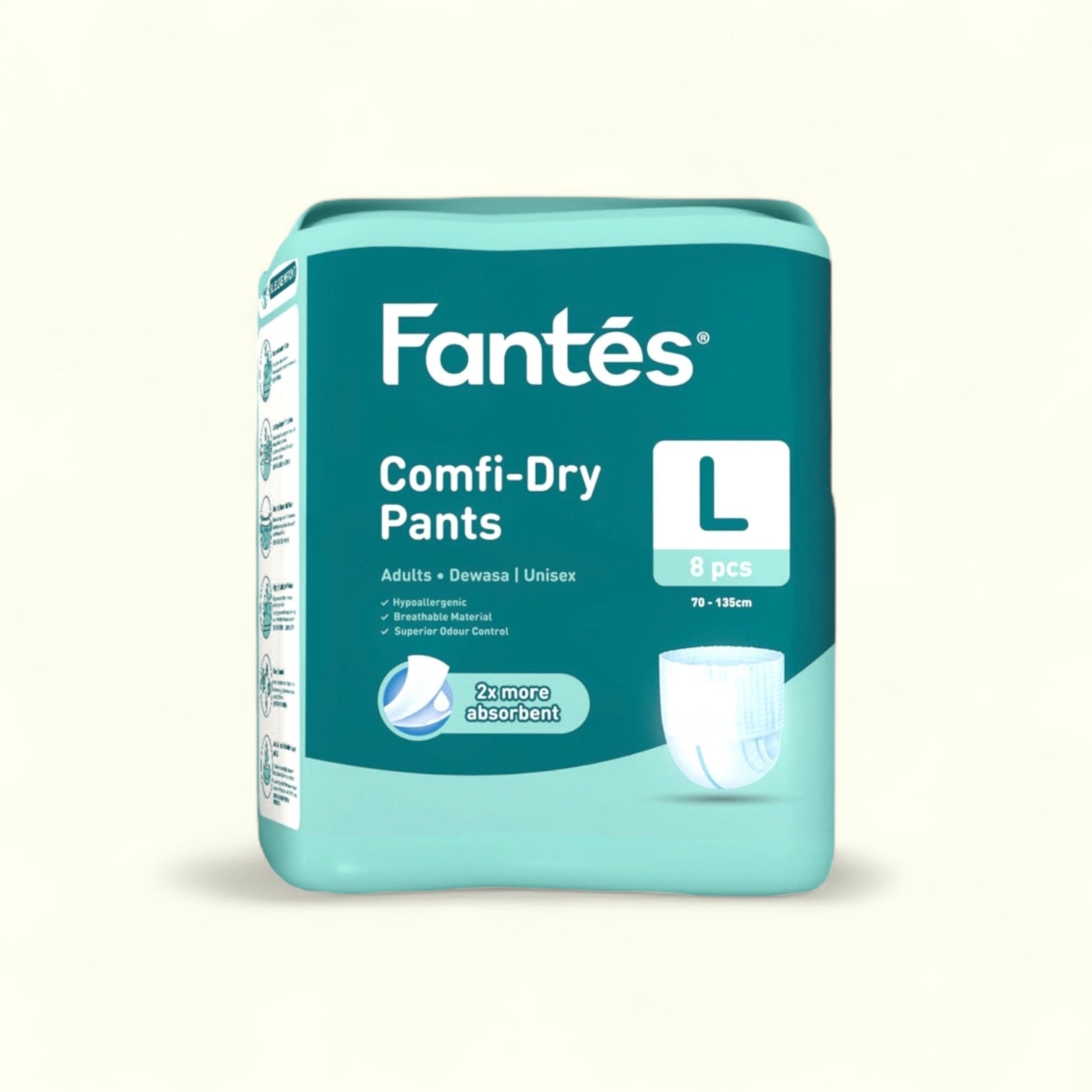Empower yourself or your family with Fantes Adult Diapers Pants. Made with a hypoallergenic and highly breathable material, these pants provide superior odor control to keep you feeling fresh and comfortable. With a super absorbent core and leakage barrier protection, you can trust these diapers to keep you dry and confident. The stretchable waist and wetness indicator add convenience, while the acquisition distribution layer technology ensures even distribution of fluid for maximum absorption.