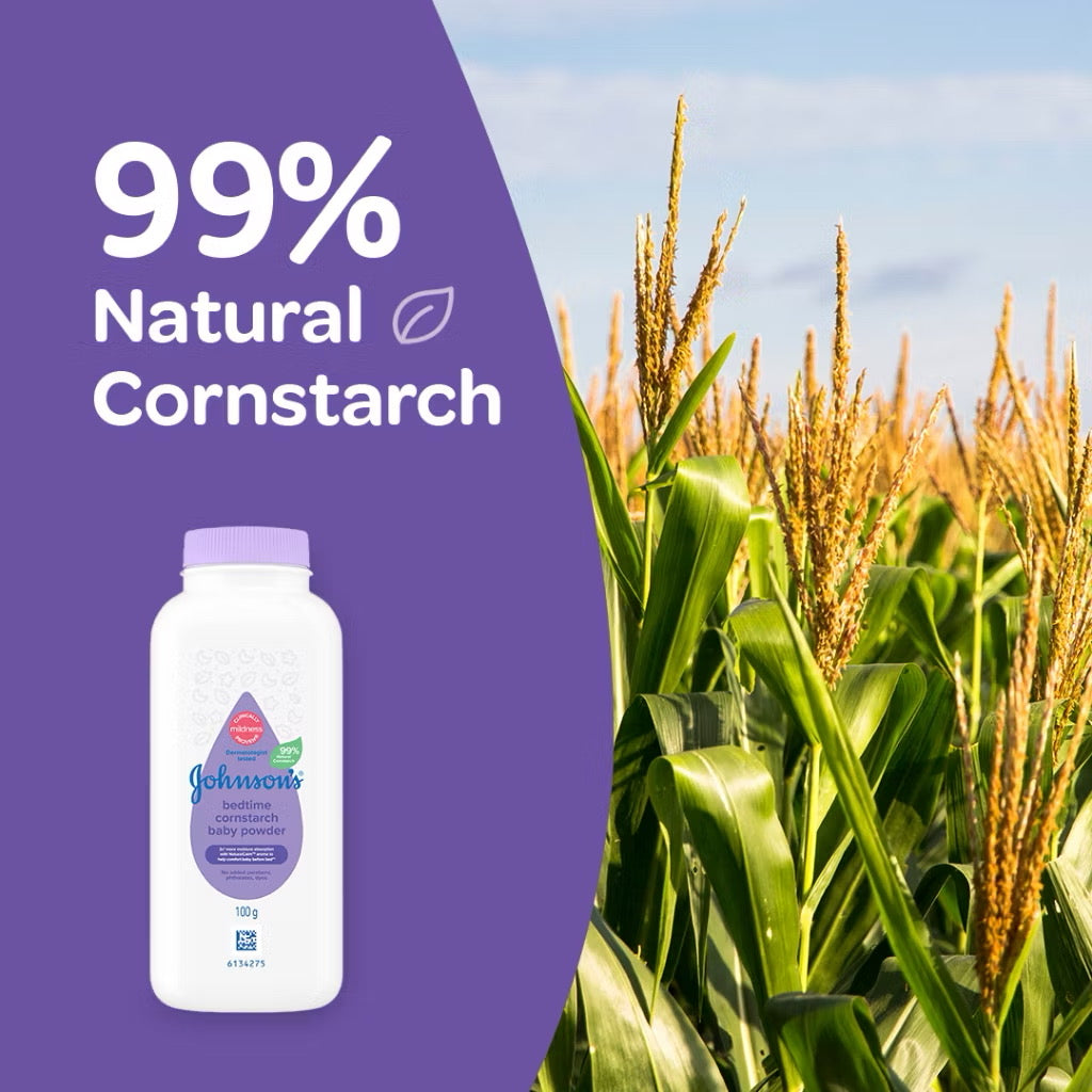 Johnson's® Bedtime Baby Powder with NATURALCALM™ essence, complements your baby’s bedtime routine for a more comfortable sleep.