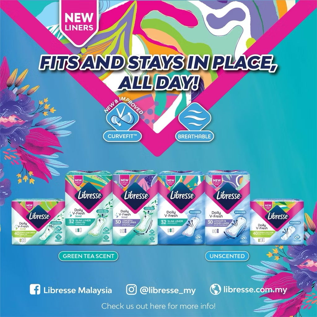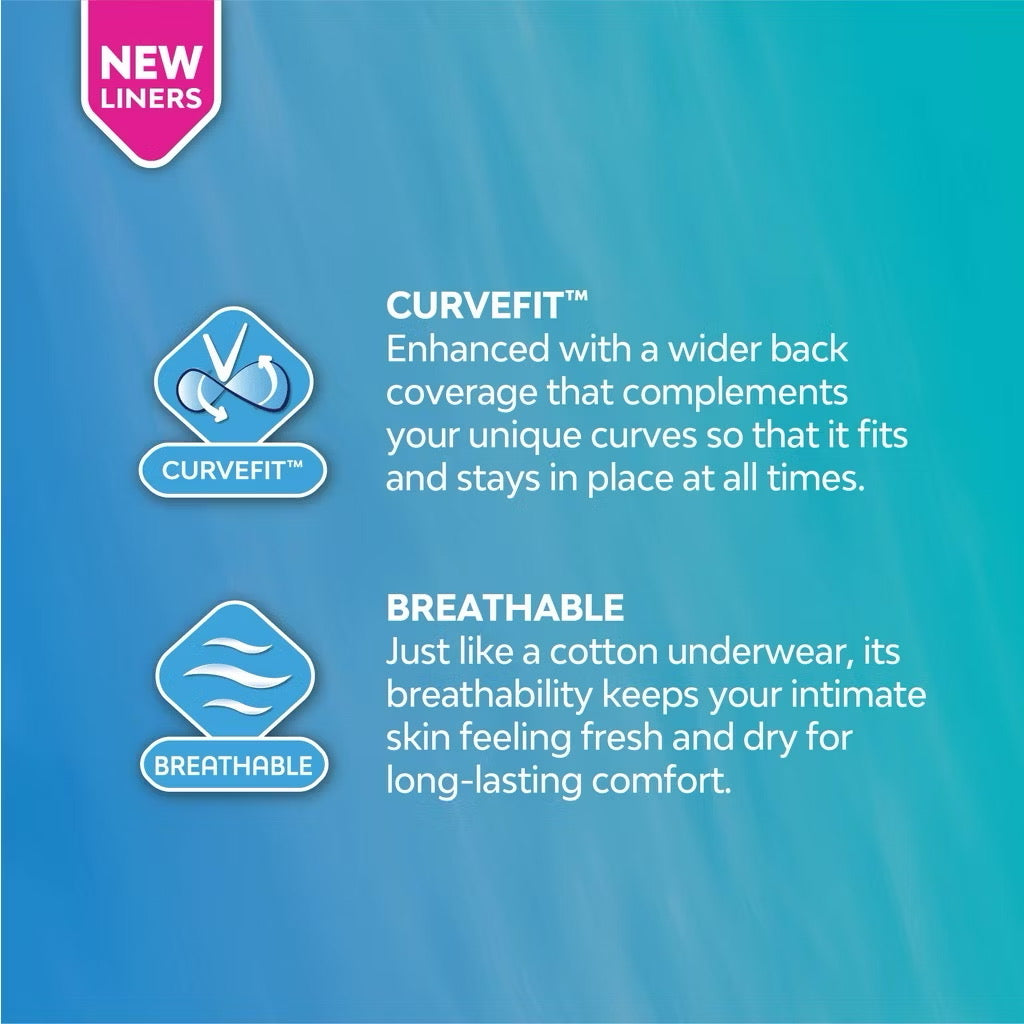 Libresse® Slim liners are great for sweat and discharge absorption while keeping you dry everyday with its breathable soft cottony surface.