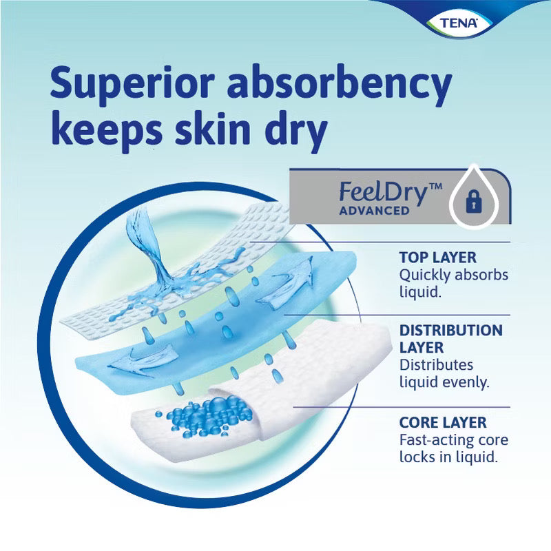 Experience reliable, underwear-like protection with TENA Pants Plus. Designed for moderate to heavy urine loss, these soft, discreet pants are worn just like normal underwear and offer exceptional security day and night. The advanced FeelDry™ technology rapidly draws moisture into the core, locking it away from the skin to keep the wearer dry, comfortable, and confident—even when seated or lying down for extended periods.